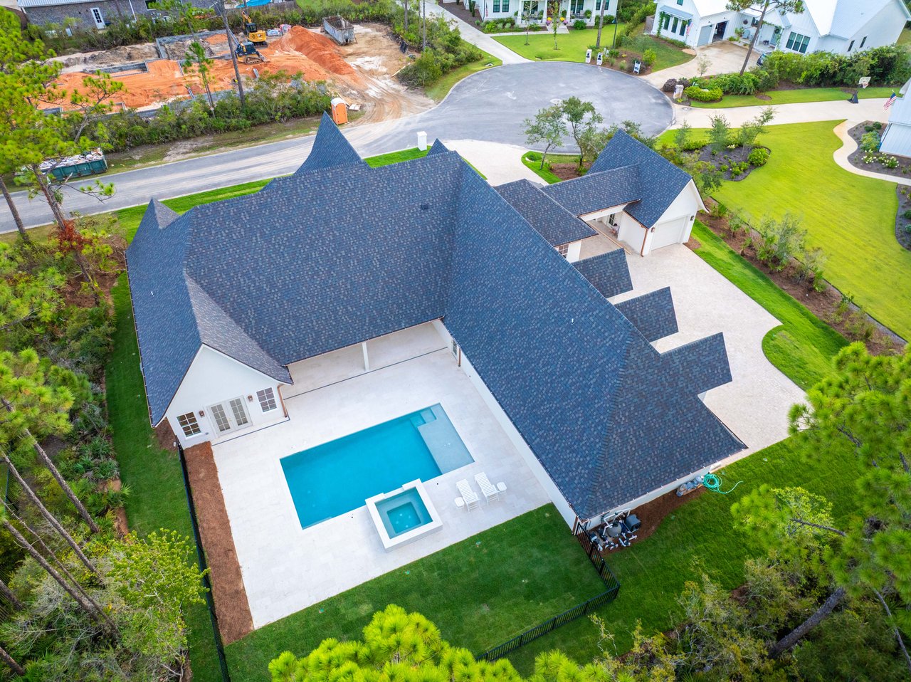 36 Seclusion Way stands as a defining example of Anderson Group 30A’s hands-on approach to luxury development, design, and execution within the gated enclave of Seclusion Bay. Situated on a coveted half-acre homesite, this custom residence spans 4,023 square feet and was thoughtfully conceived to deliver both refined elegance and everyday livability. The home features five bedrooms, five and a half bathrooms, and a rare four-car garage, all carefully curated to maximize comfort, functionality, and architectural presence.