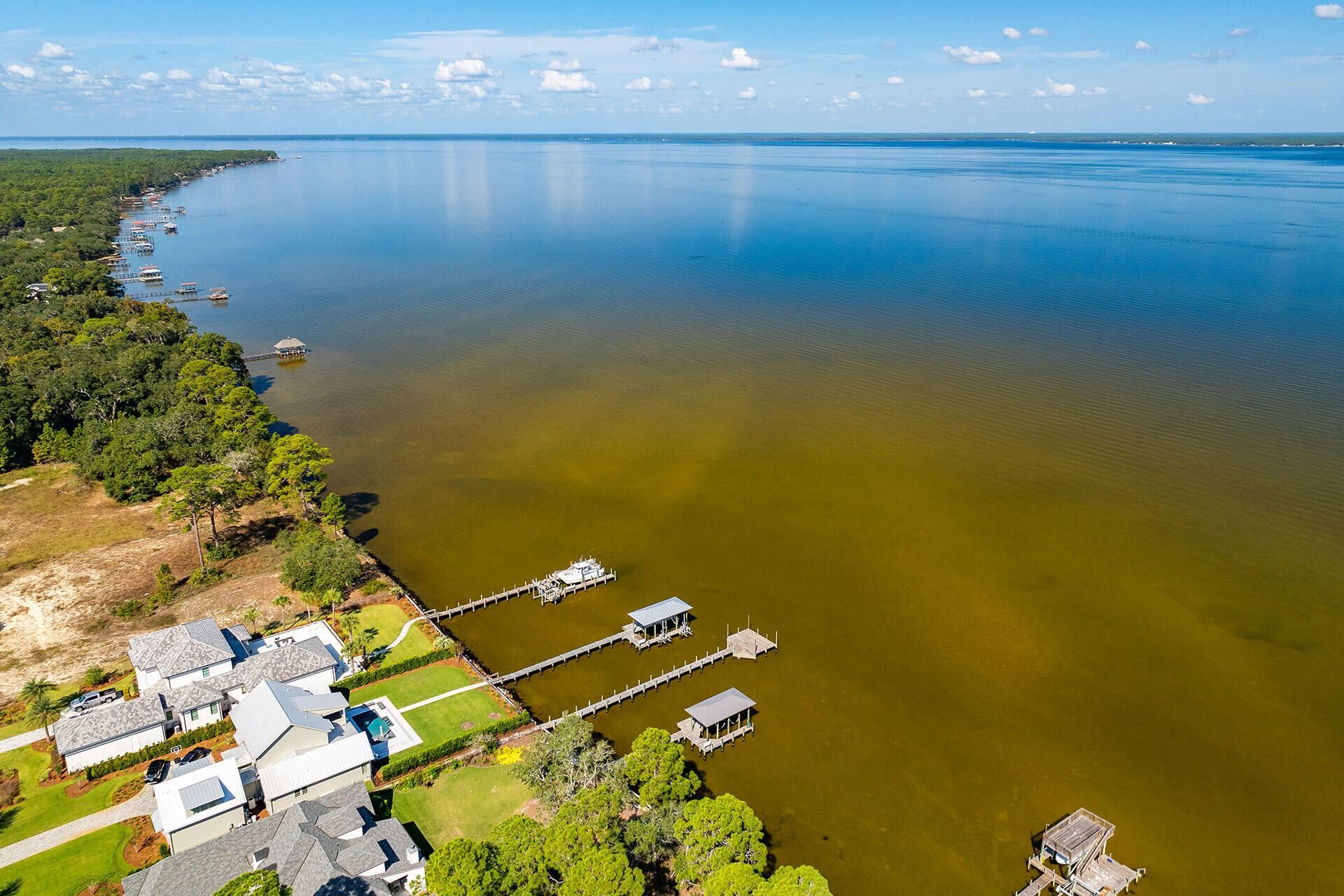 One of the defining features of Seclusion Bay is its private community dock, providing owners with easy access to boating, paddleboarding, fishing, and sunset cruises across the bay. Many properties enjoy expansive water views, mature landscaping, and ample room for custom homes with pools, outdoor living spaces, and garages designed for both luxury and function. The neighborhood’s layout emphasizes privacy and tranquility, making it ideal for full-time residents, second-home owners, and those looking to build legacy properties in a low-density coastal setting.